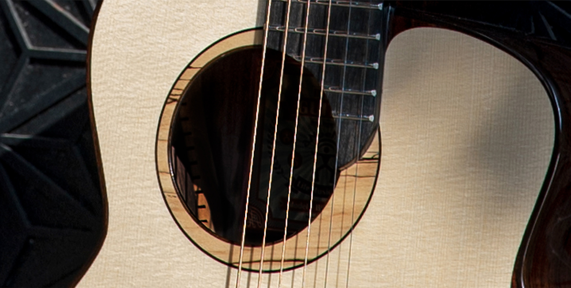 Rosewood binding extending from the top of the body to the curve was inspired by the concept of moon phases.