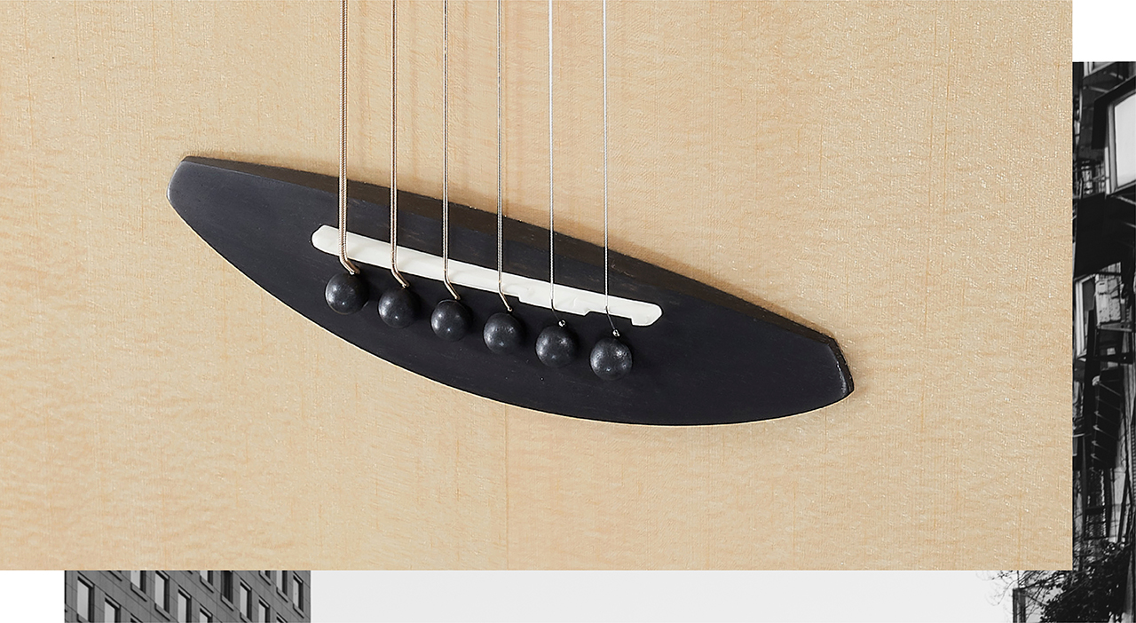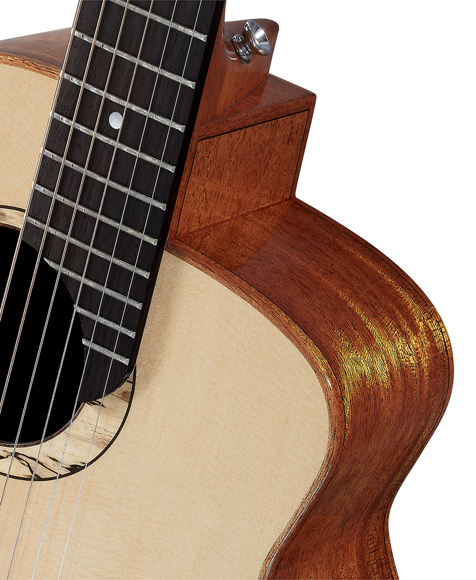 Design with Acoustic Future brace construction into travel size guitar, improve the string to string balance, resonance, sustain, and you can feel the chord harmony. Full size guitar sound built into a travel compact size guitar.