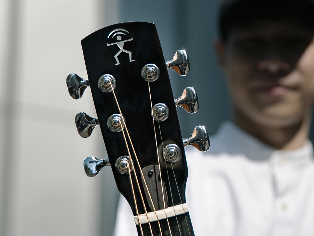 Sugita Kenji designed the Acoustic Future series, “Coherence Vibration” Air Oscillation. When string is plucked, the guitar top vibrates, it provides a coherence vibration against the body, neck, and headstock, and creates a rich spectrum of sound. Light see-through top is controlled within 2.5mm, the brace design stabilizes the top, prevents twisting, and supports the string tension. After three years of R&D, a full responsive sound is achieved, removing the hard frequency.