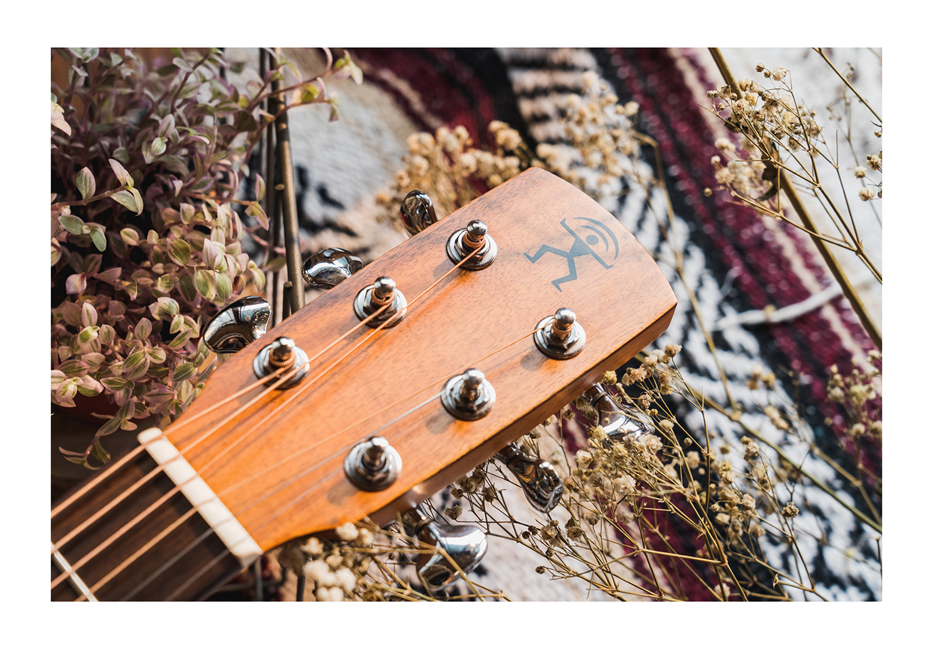 aNueNue classic-headstock design made with a Acacia koa veneer with aNueNue decal logo. The tuners with 1:14 Derjung gear ratio for precise tuning