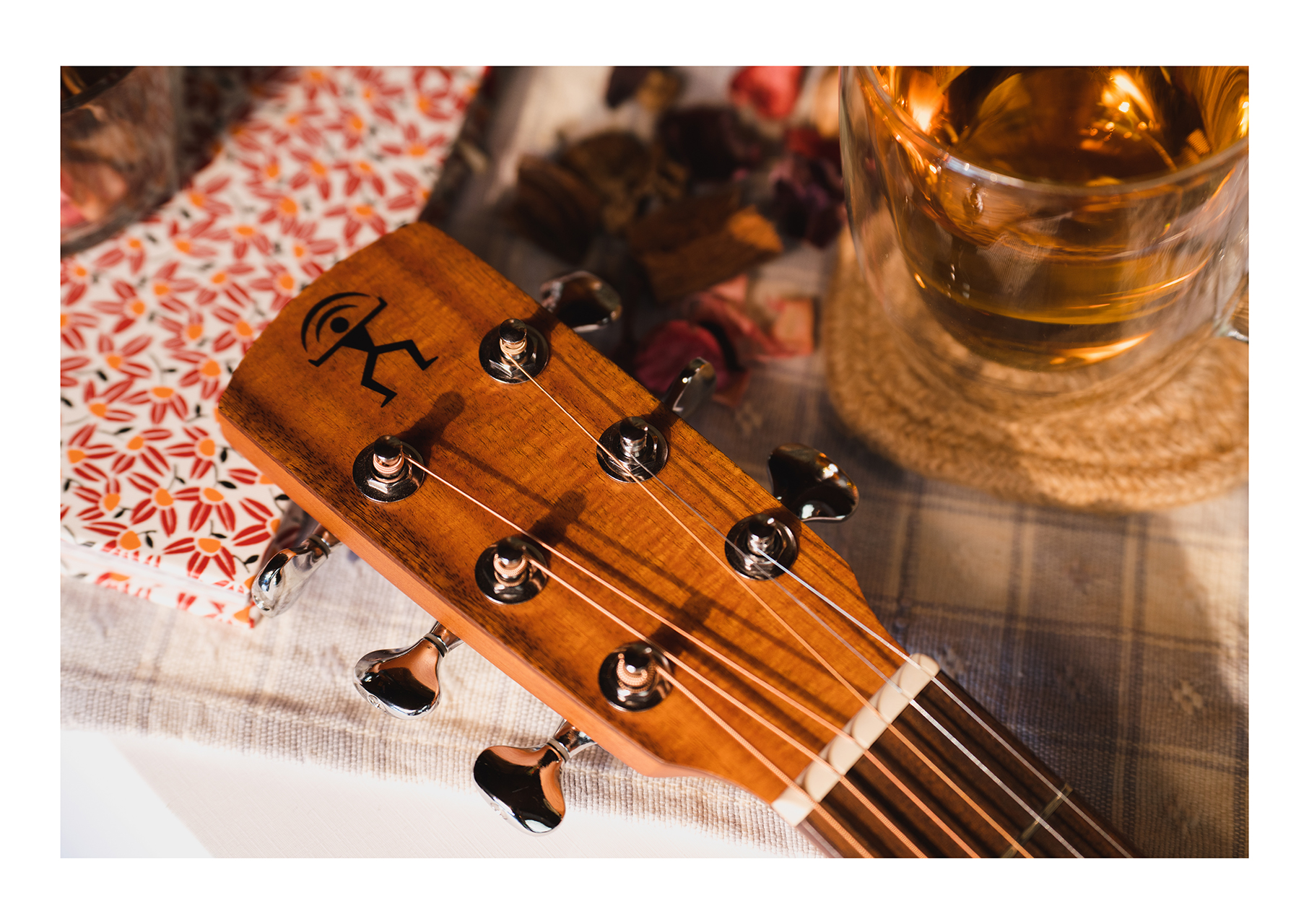 aNueNue classic-headstock design made with a Acacia koa veneer with aNueNue decal logo. The tuners with 1:14 Derjung gear ratio for precise tuning
