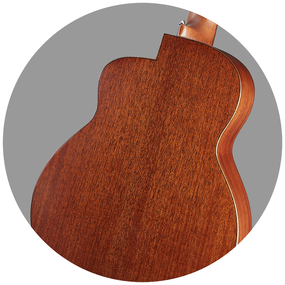M20 & L20 used Taiwan Mahogany as a top, and Mahogany as a back and side wood. It a type of tonewood can be easily seasoned and is very stable to work with. It comes in a straighter grain which is great for an effective clear tonal transfer and it gives players a strong mid-range presence and a wonderful warmer overtone.