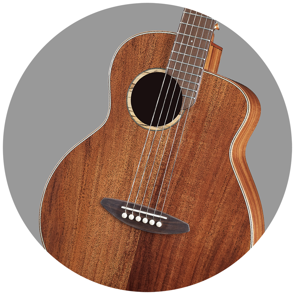 The rosewood bridge helps support the string tension. The Synthetic Bone for the nut which is very hard and articulate. This helps the strings to vibrate and to have a deep resonance.The compensated saddle designed to provide the accurate intonation and produce the correctly pitched note.