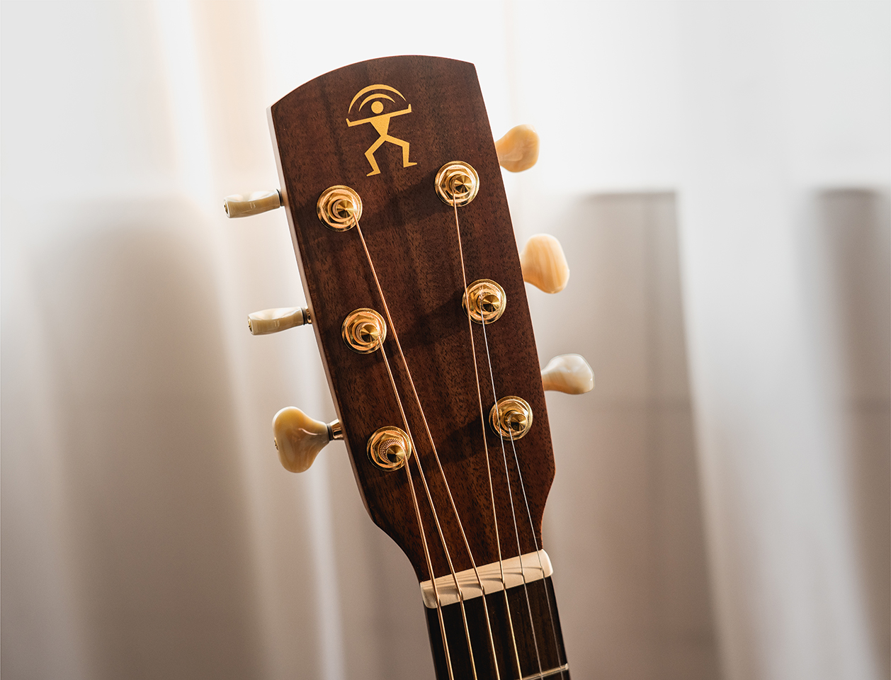 aNueNue classic-headstock design made with a Acacia koa veneer with aNueNue decal logo. The tuners with 1:14 Derjung gear ratio for precise tuning