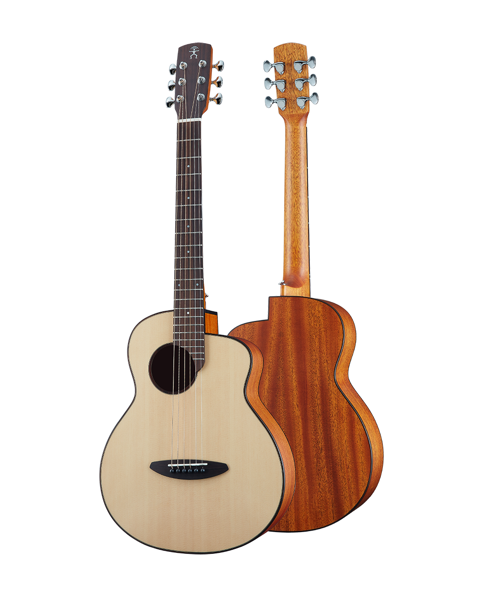 Crafted from sitka spruce top delivers a clear yet warm tone, paired with mahogany for the back and sides, this solid wood construction gives a straight grain and rigid texture, producing a bright and crisp sound with a nice balance.