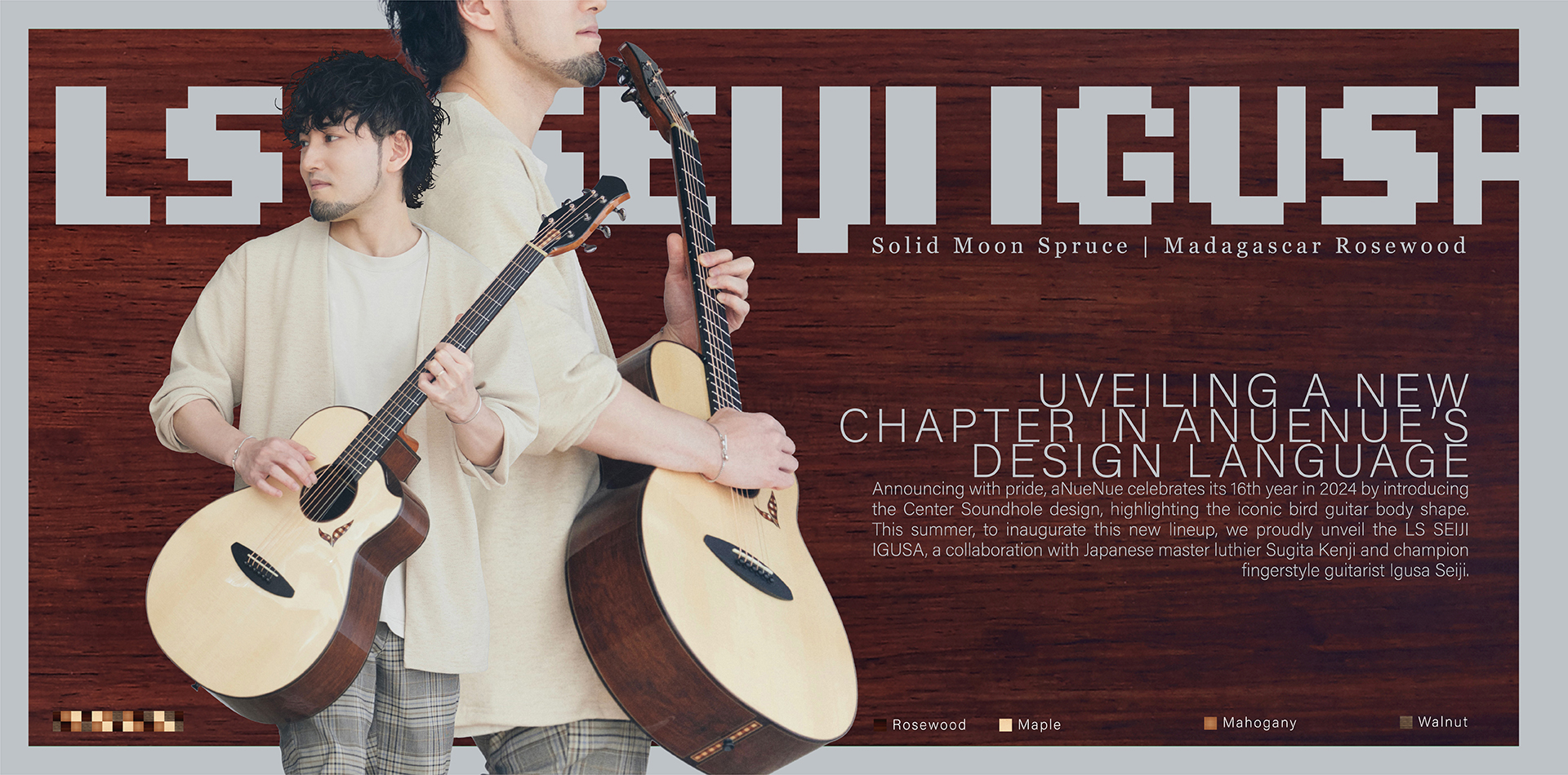 aNueNue's latest chapter, developed under the guidance of renowned fingerstyle guitarist Seiji Igusa and master luthier Kenji Sugita, has arrived. We're excited to unveil this masterpiece designed specifically for fingerstyle guitar playing.