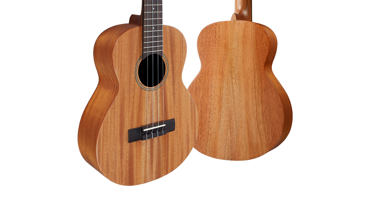 Top, back and sides are all solid wood. aNueNue uses wood that has been naturally air dried wood and are season for many years before even being put into production. All our solid woods are used for our high end pieces. All aNueNue’s solid wood pieces require time to open up and will develop an overall distinguished more complex harmonic tone quality.