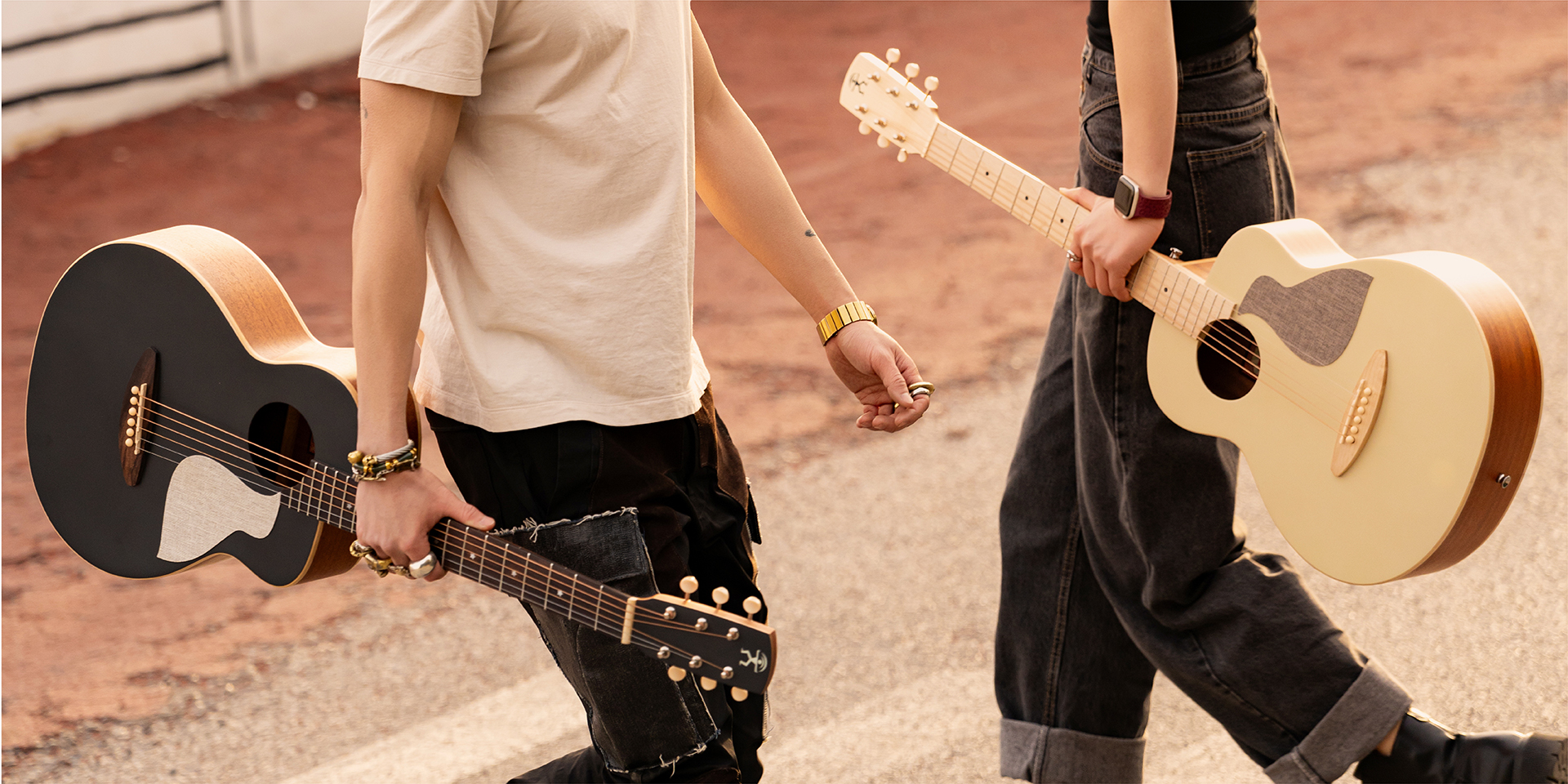 杏奶白、活珊瑚橘與冰綠色使用楓木指板。