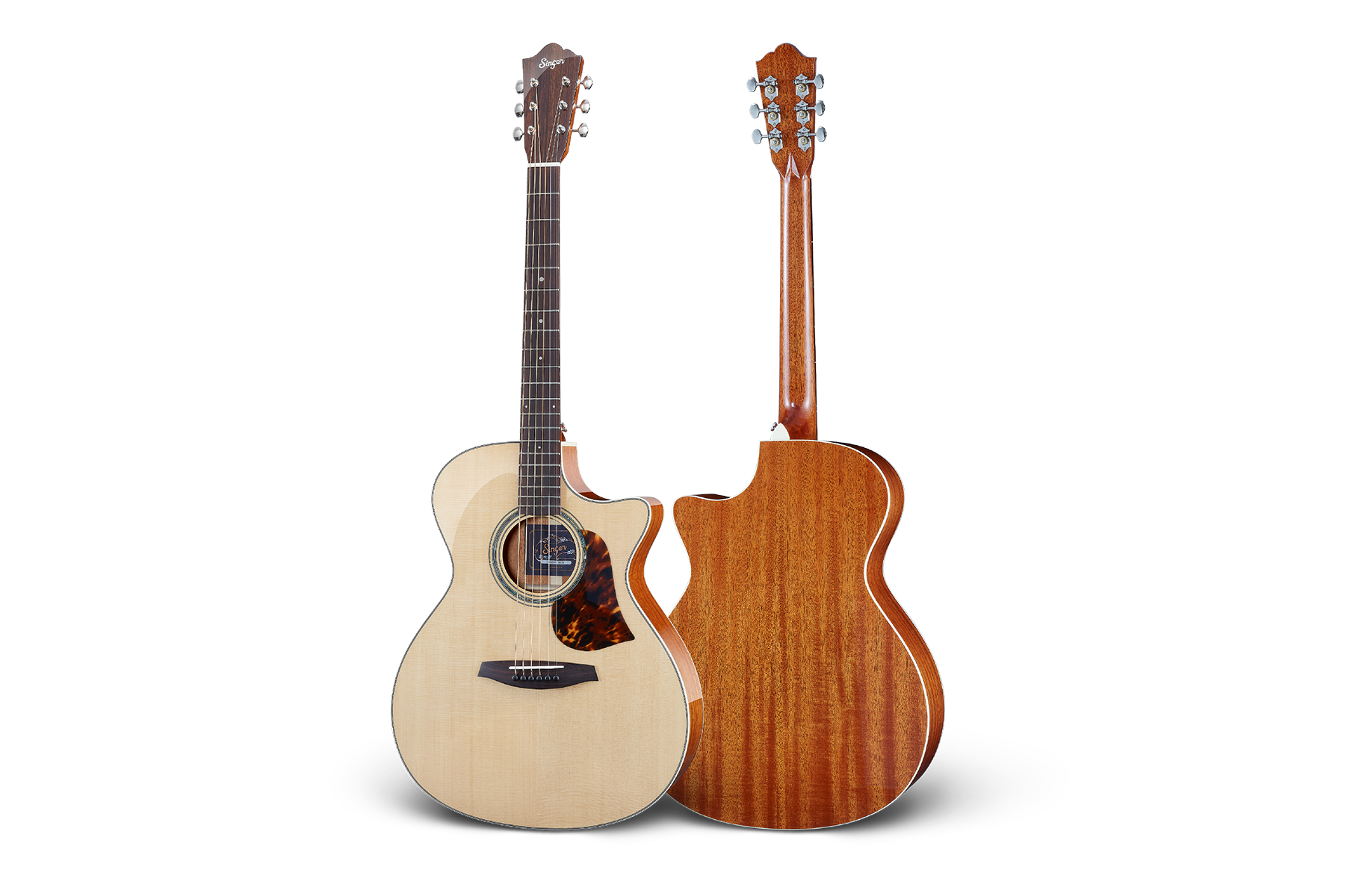 IMAGINE GA04 GRAND AUDITORIUM 為高性價比與經典外觀的音樂家設計的全單吉他。全單構造結合雲杉面板、非洲桃花心木側背及非洲桃花心木琴柄,賦予其飽滿的低音和清晰的中高音,音色現代且流行。切角設計讓高把位演奏更加輕鬆,是指彈演奏者的理想選擇,而流線型的不對稱外觀則吸引眼球,增添新鮮感。