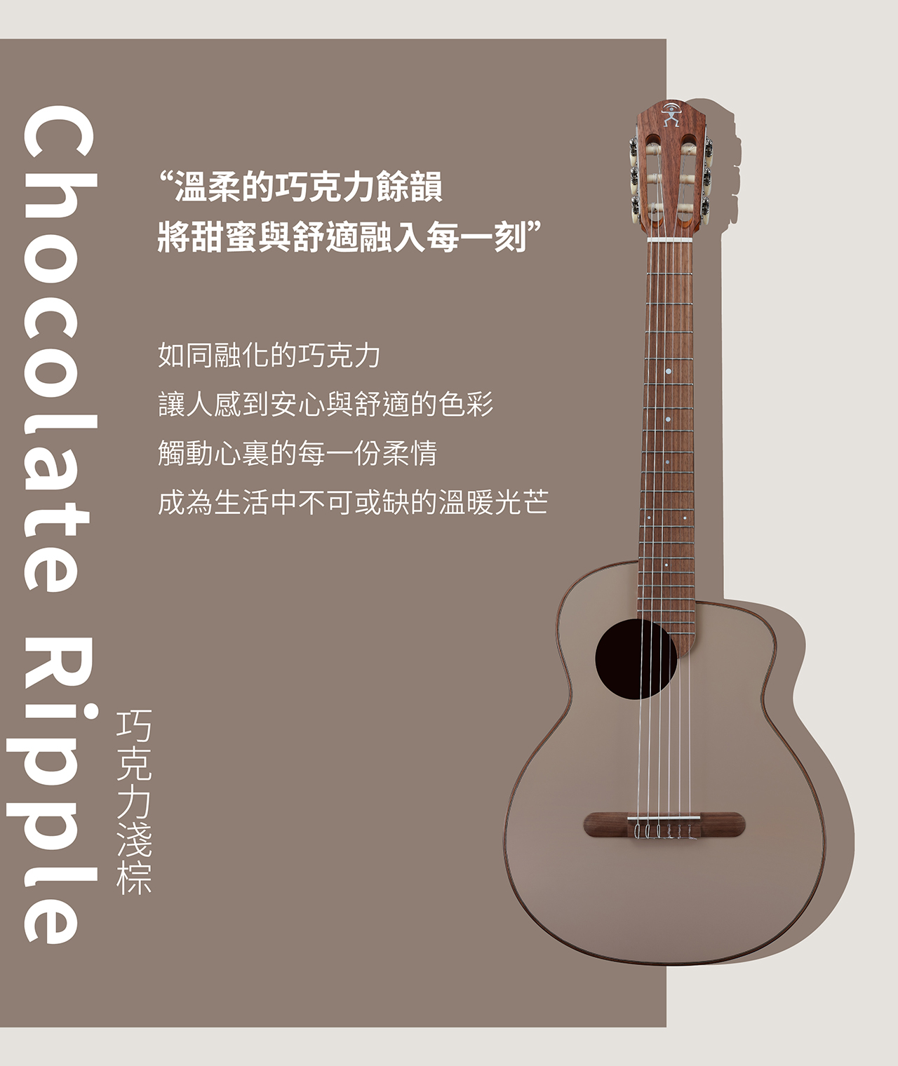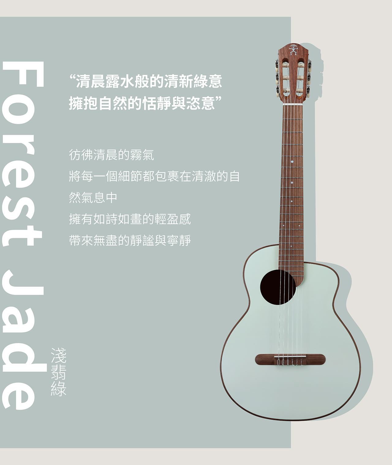 尼龍吉他在音色、演奏技巧和舒適度擁有更好的平衡。結合古典吉他琴頭的精緻設計,與尼龍弦柔和、溫暖的音色相結合,讓演奏更具表現力和情感深度,展現高雅、且情感豐富的音樂。徜徉在旋律的海洋中,每一個音符都是你的情感流露,而每一把吉他,也都擁有屬於自己的獨特色彩。