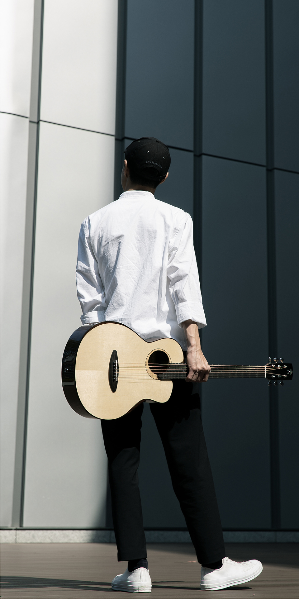 走在大街邁開步伐,穿梭於喧鬧城市;逐漸沸騰的聲音需要出口,用富含情感的音樂,刻下生活的印記。背起屬於你的旅行吉他,輕巧的琴身方便來去自如,適合愛好自由的你。無論是吵雜的都市或是寬廣的空地,或站或坐,都能找到屬於你的舞台,一切隨心,就任由指尖流洩出充滿渲染力的理想聲音吧!