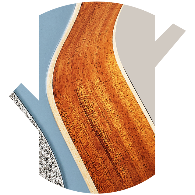 阿羅納藍、森林綠、暗夜黑、寧靜灰與光耀金使用玫瑰木指板。