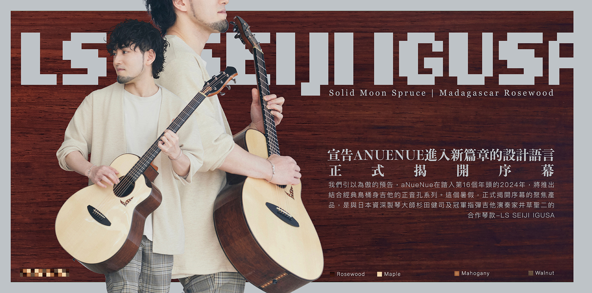 aNueNue的新篇章在知名指彈吉他演奏家井草聖二與資深製琴師杉田健司的聯合監修之下,正式揭開序幕,我們搶先揭露品牌aNueNue在設計語言上的增添,推出這款專為指彈吉他設計的傑作