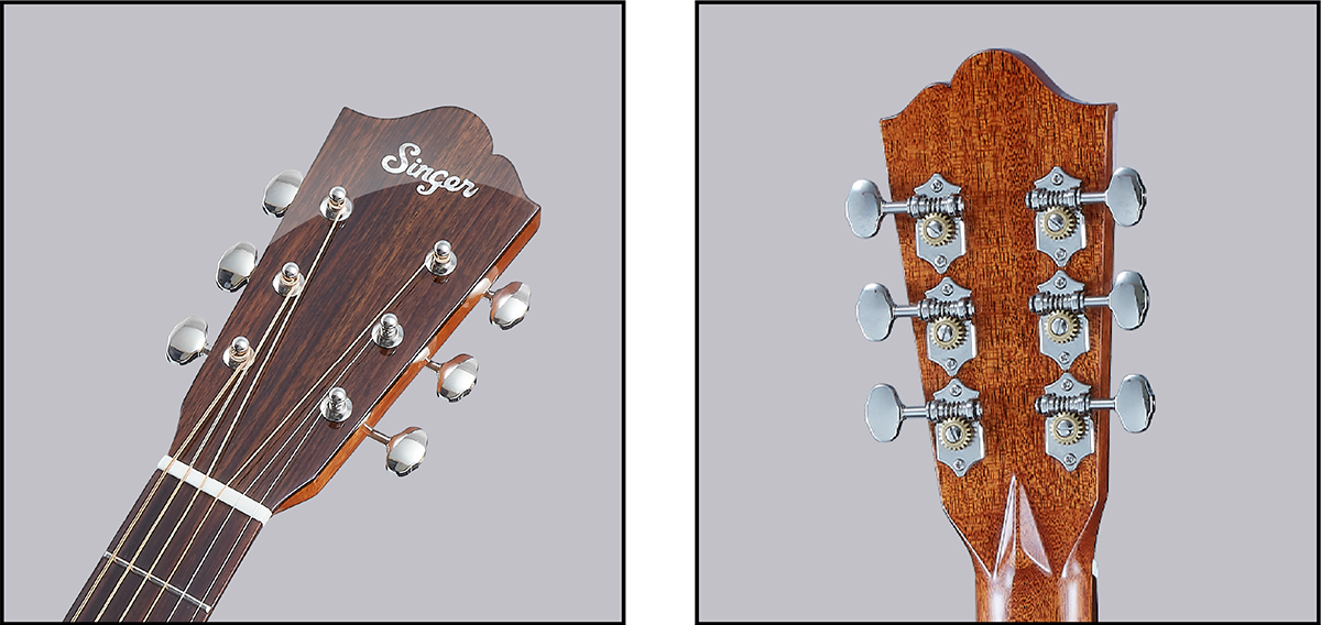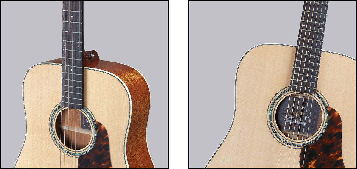 吉他的設計細節奢華而不浮誇,琴身的象牙白鑲邊,以及貝殼鑲嵌的琴頭 logo 和音孔花圈,皆展現對傳統的致敬。高光漆面提升耐用性,並增添精緻感,成為日常演奏與創作的理想夥伴。