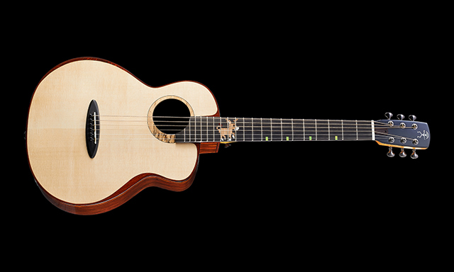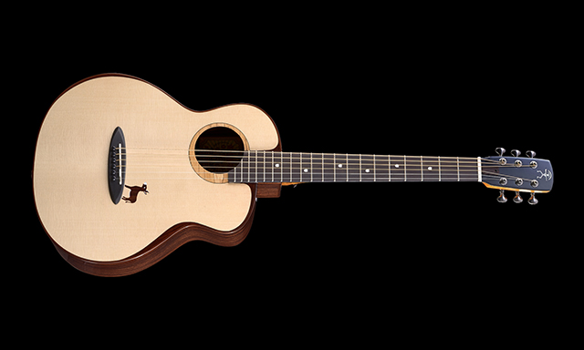 指板點以白貝殼鑲嵌驢子腳印為設計。並在面板上有著以玫瑰木鑲嵌的驢子圖案。像是站在琴橋上的設計安排,相當可愛。