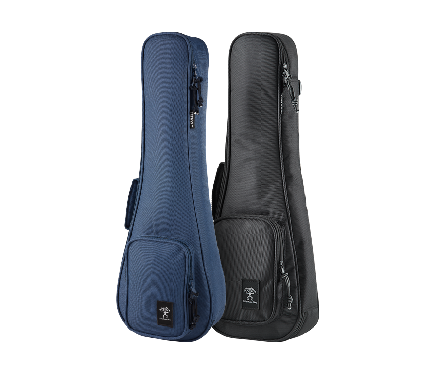夏威夷夢搭配琴包,藍色款內裏為藍、白相間天然純棉的方格子內裏襯布。黑色款以全黑為設計,搭配黑色底的白色aNueNue LOGO 刺繡,造型簡約。兩款皆前側有拉鍊口袋可收納,側邊有單邊提把,背面有雙肩背帶。