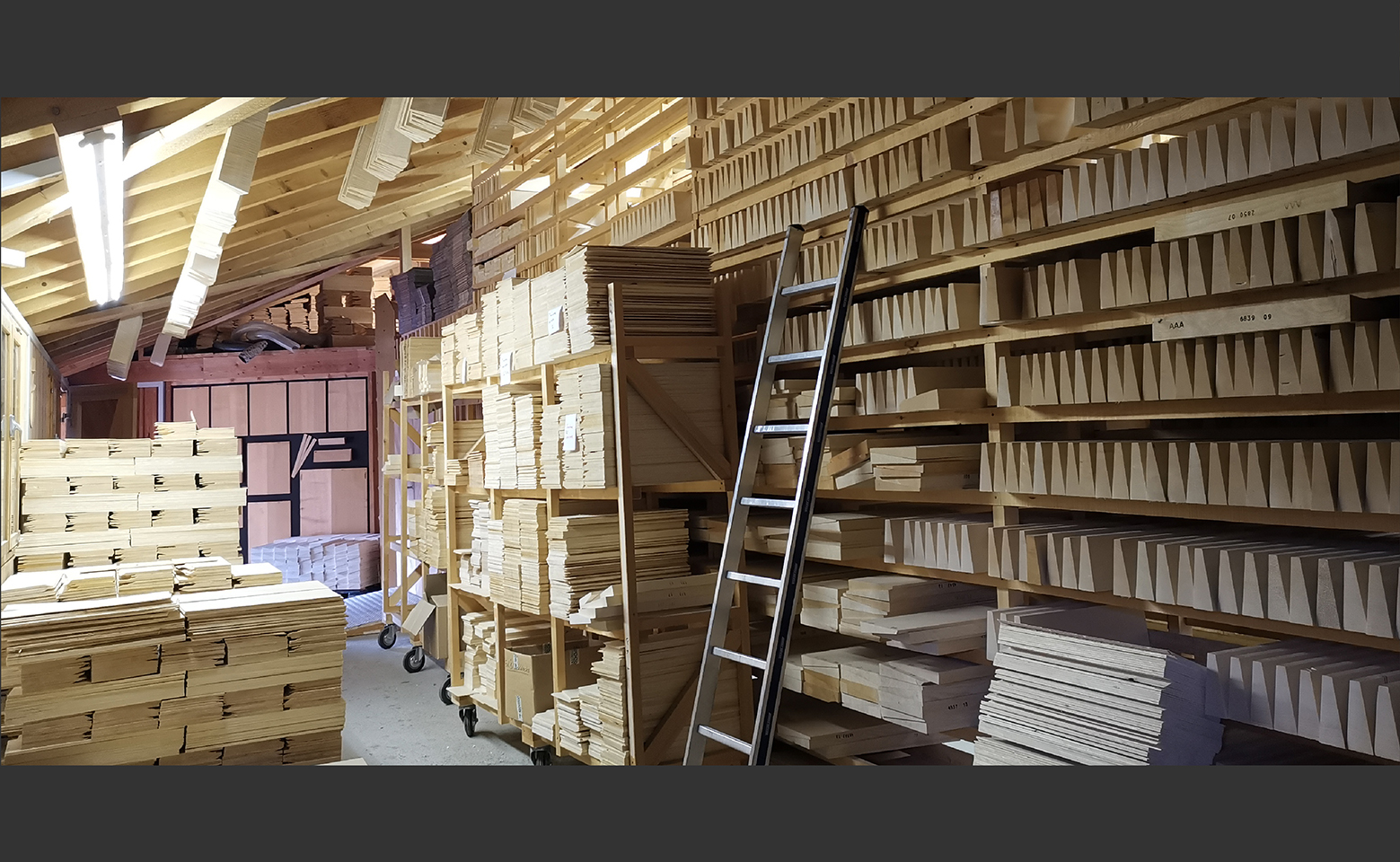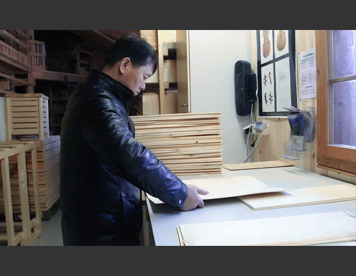 面板使用精選瑞士月亮雲杉,質地顏色較一般雲杉白皙,除了雲杉的直條木紋之外,還擁有緊密的橫紋。不易吸濕與放濕,是相當穩定的木材。